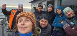 В 21,30 ч. стъпихме на снежния бряг на остров Ливингстън. С помощта на чилийския военноморски кораб „Акилес“ преплавахме бурните води на пролива Дрейк. С тяхна помощ в рамките на 2 часа разтоварихме необходимите провизии за предстоящите научни и логистични проекти преди пристигането на българския полярен кораб „Св.св. Кирил и Методий“, разказва тя.