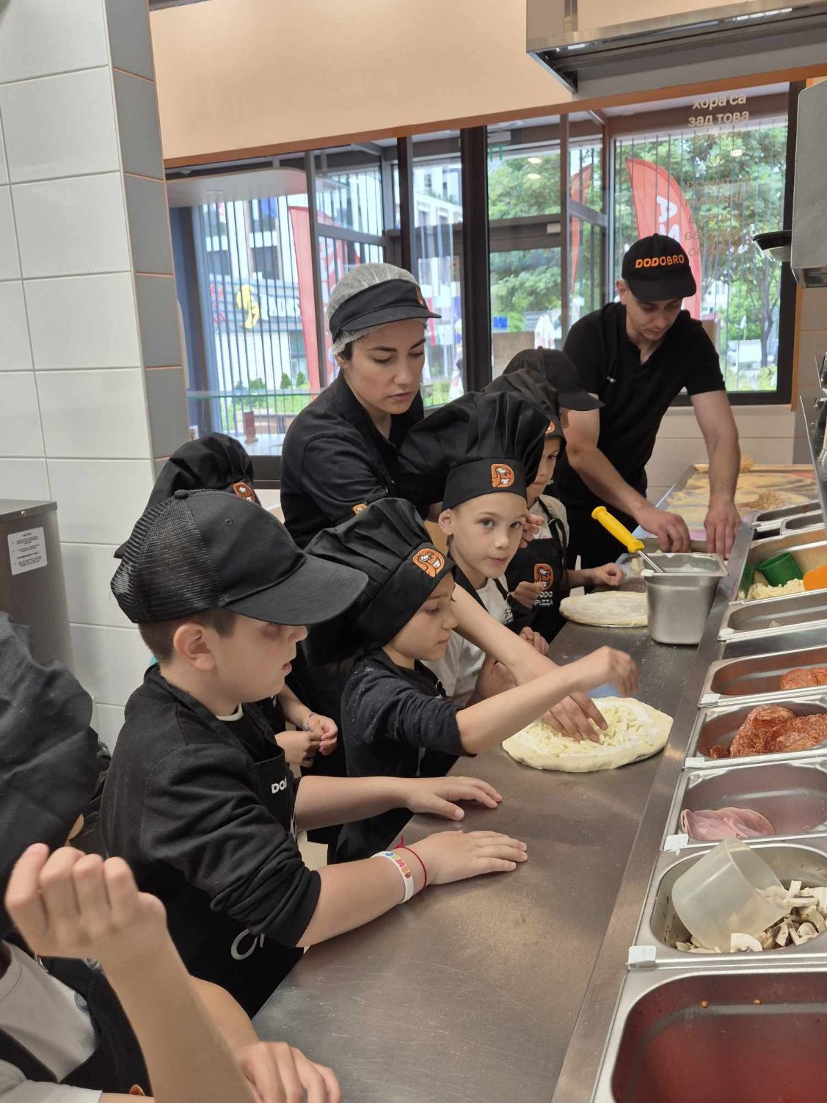 в „Додо пица“. Децата, с престилки и шапки, като истински кулинарни майстори, сами приготвиха любимата си храна и след това я хапнаха с удоволствие. Всички завършиха курса с отличие и получиха сертификат.