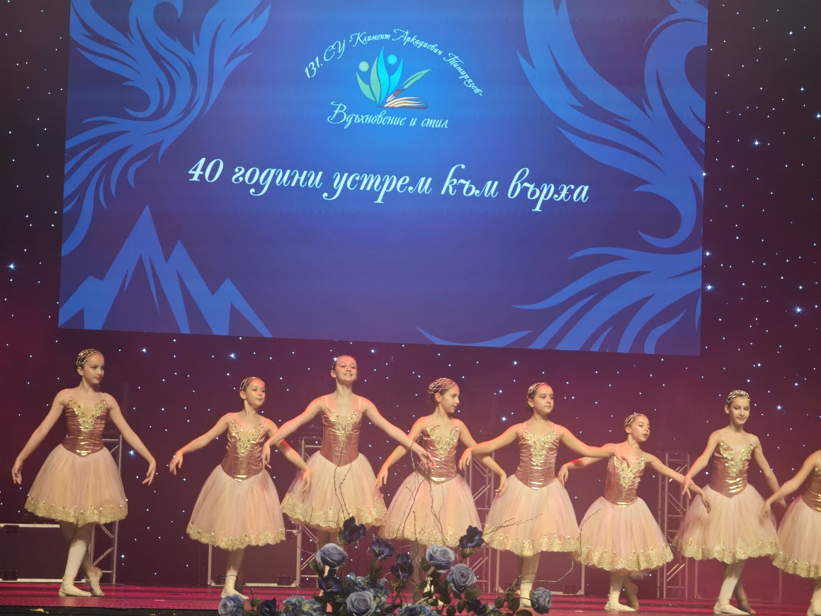 С концерт-спектакъла „40 години устрем към върха“ в Националния дворец на културата столичното 131. СУ „Климент Аркадиевич Тимирязев“ отбеляза своя празник.