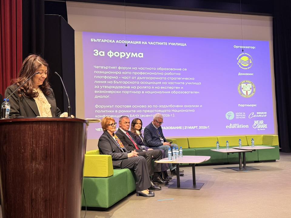 130 директори, учители, ученици, партньори и гости взеха участие в Четвъртия форум на частното образование на тема „Иновациите и изкуственият интелект в частното образованието – опит, практики и визия за развитие на ключови умения“. Организатор е Българската асоциация на частните училища. Домакин на срещата беше Частно средно училище „Свeти Георги“ в София.