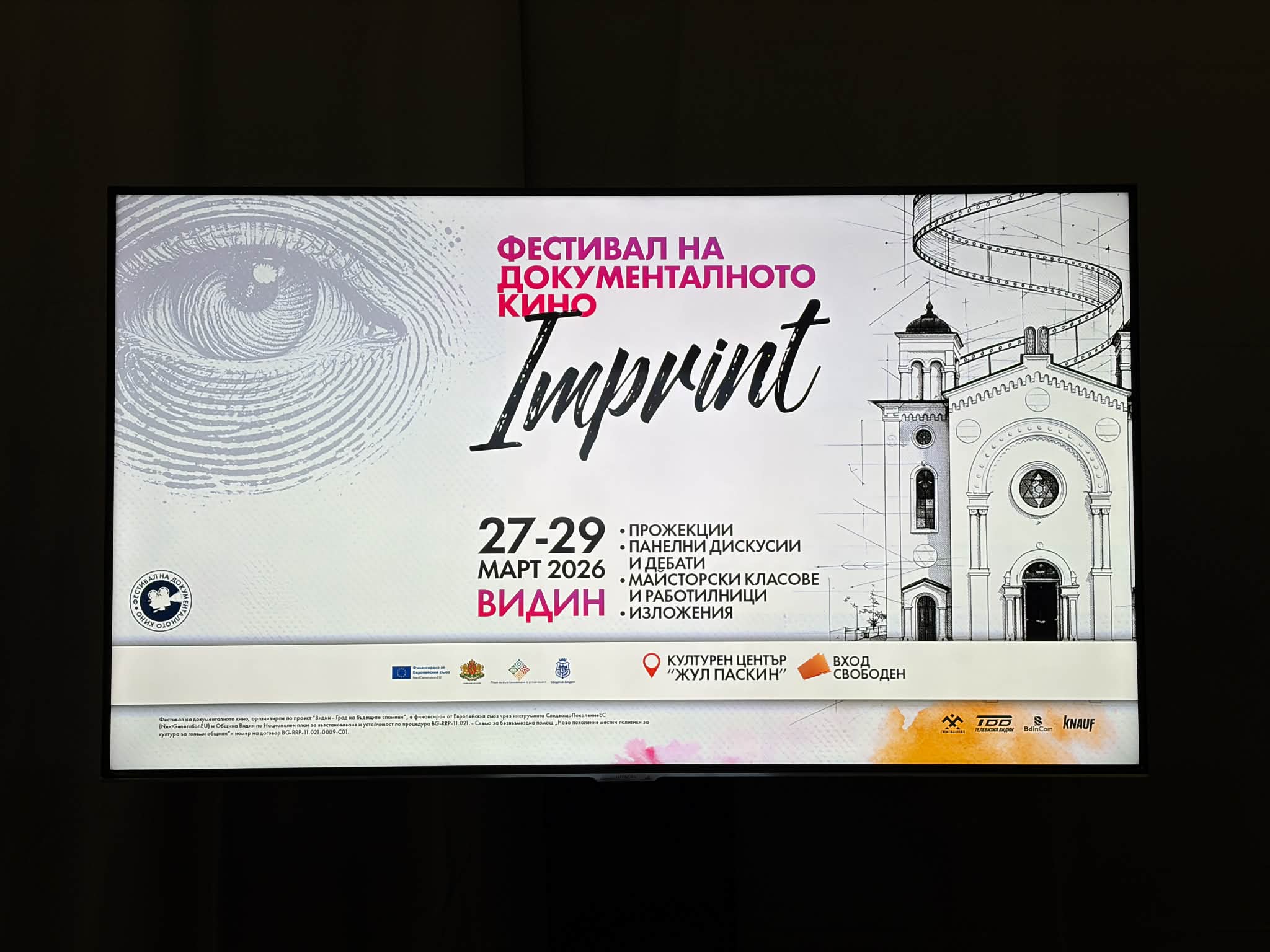 Фестивалът на документалното кино Imprint е организиран по проекта „Видин – Град на бъдещите спомени“,