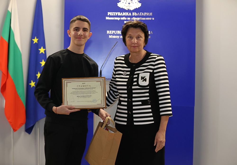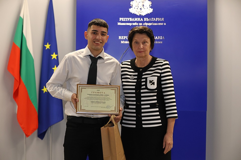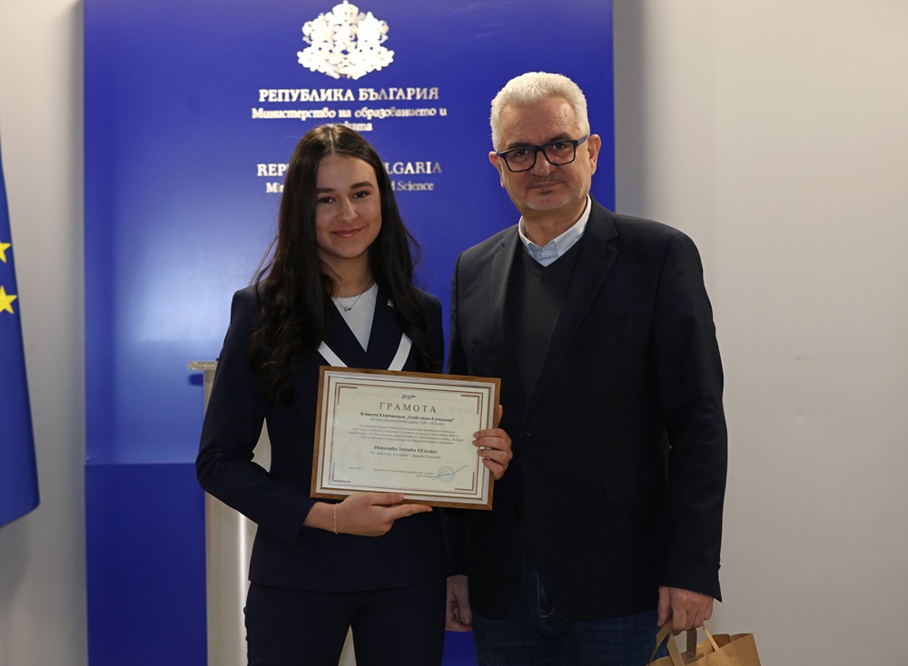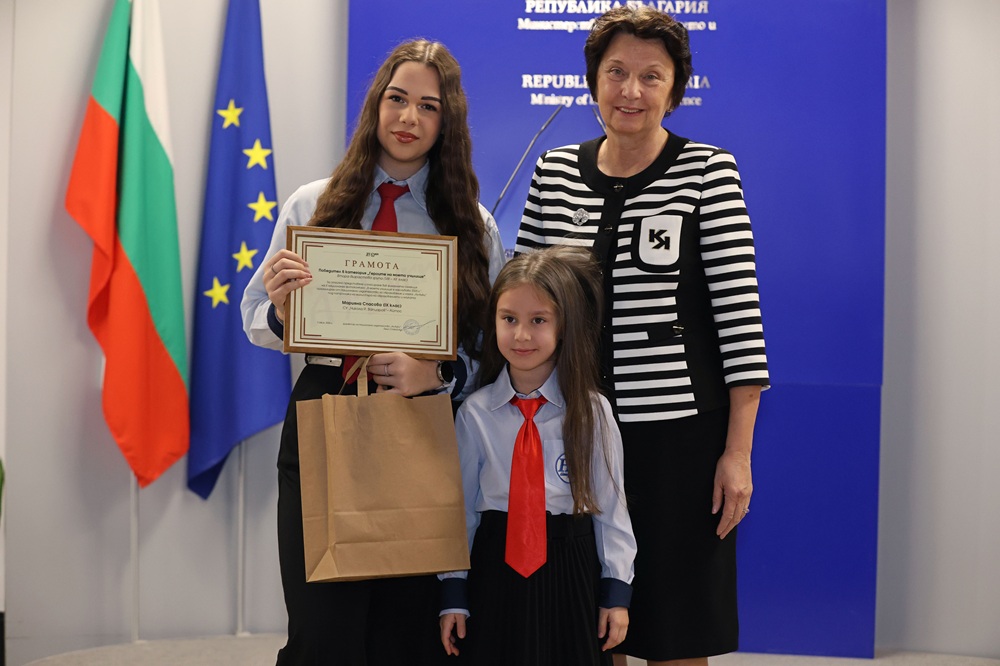 Зам.-министър Лазарова връчи отличията на победителите в трите категории във втора възрастова група (VIII – XII клас) – „Улови мига в училище“, „Героите на моето училище“ и  „Снимка с история“.