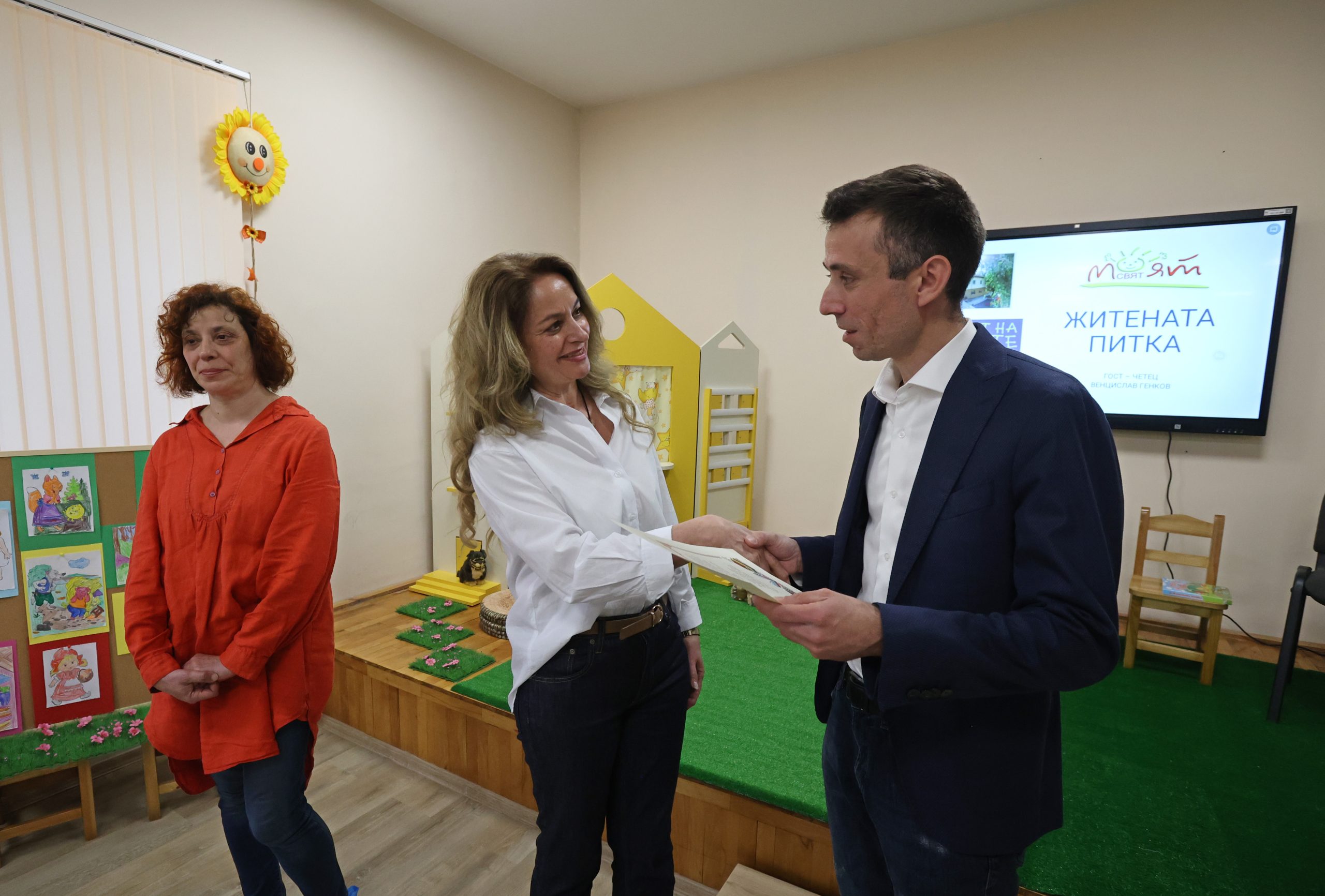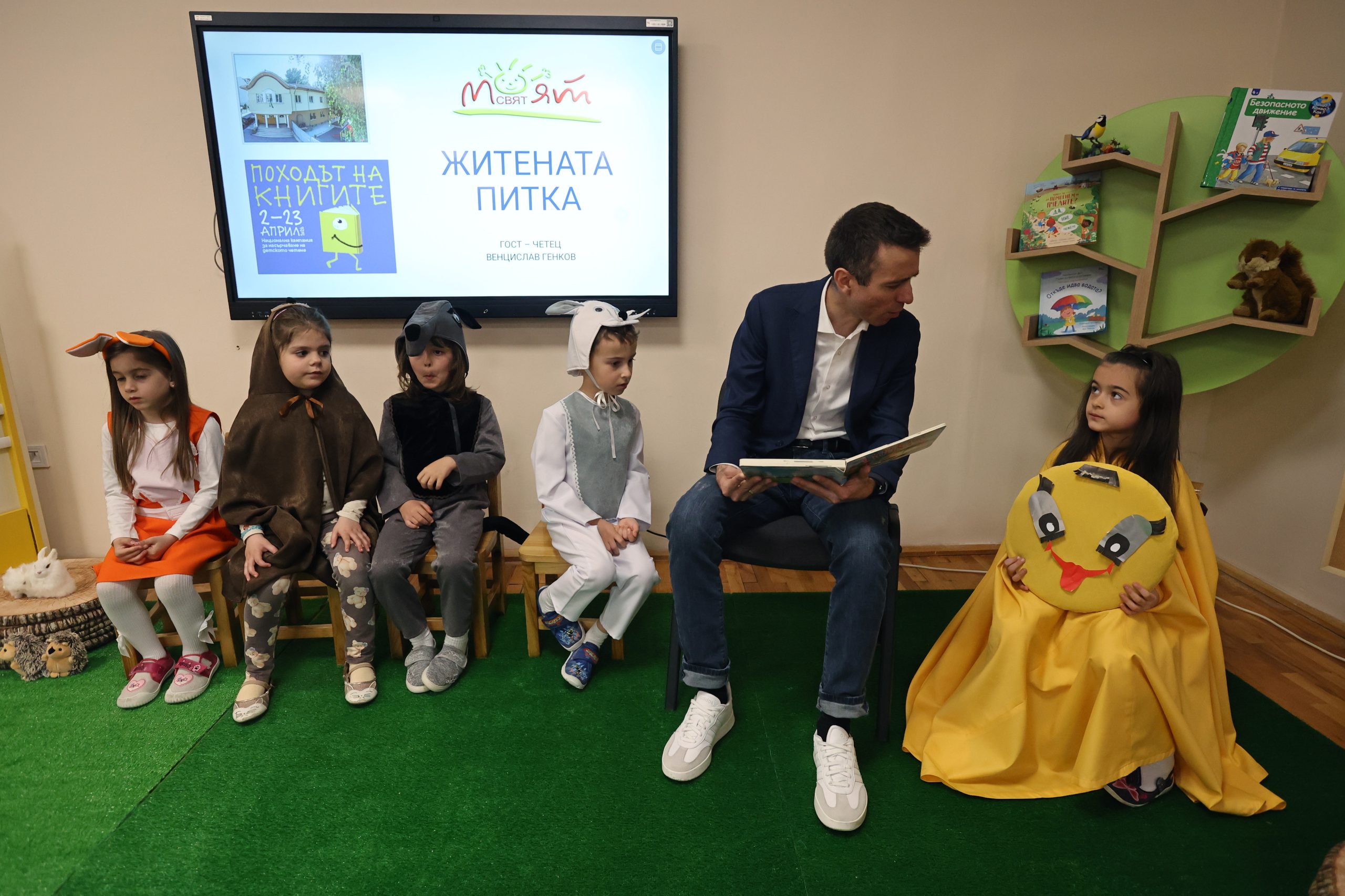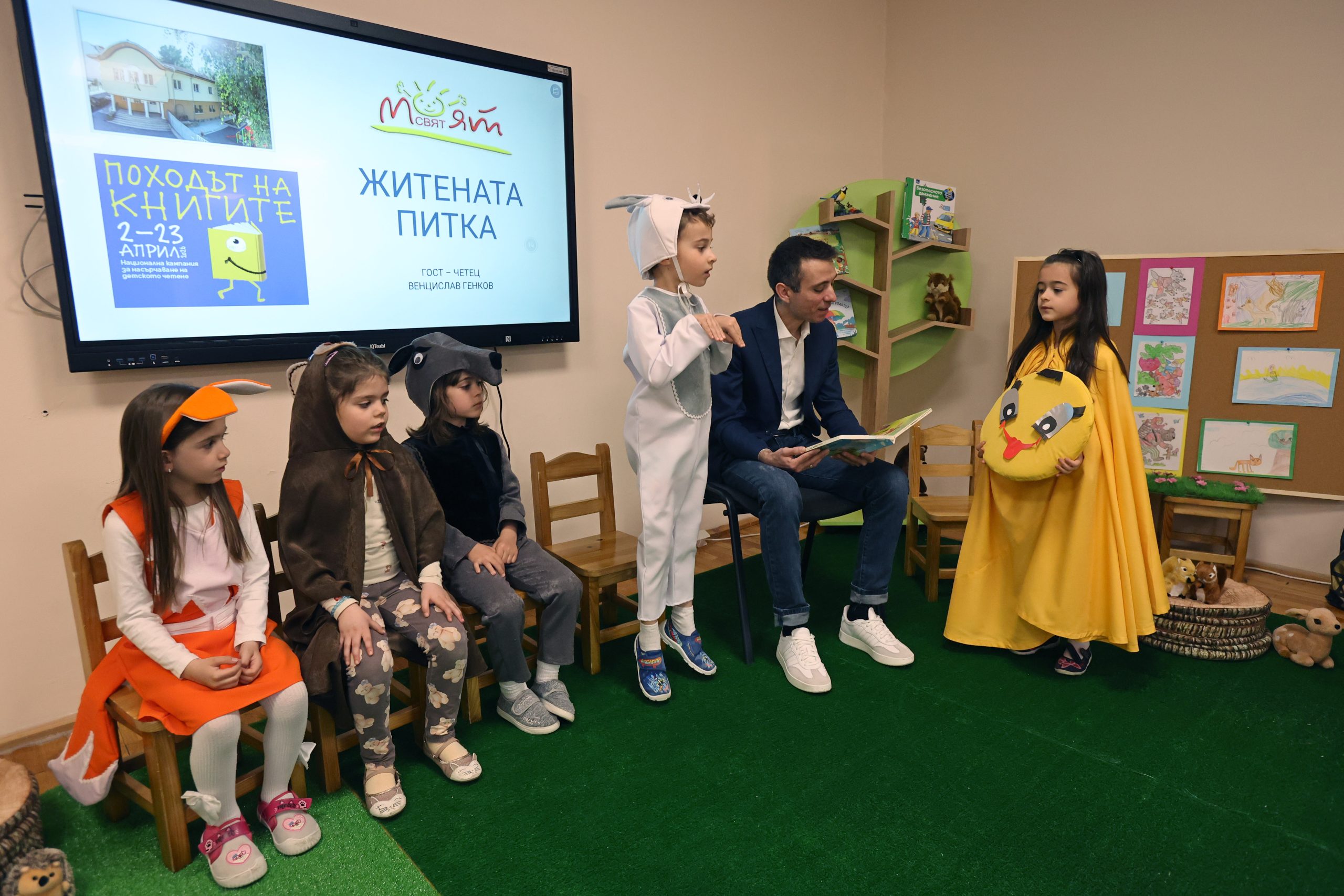 По време на срещата журналистът прочете пред малките слушатели една от най-обичаните български народни приказки  – „Житената питка“, която предизвика жив интерес и активно участие от страна на децата.