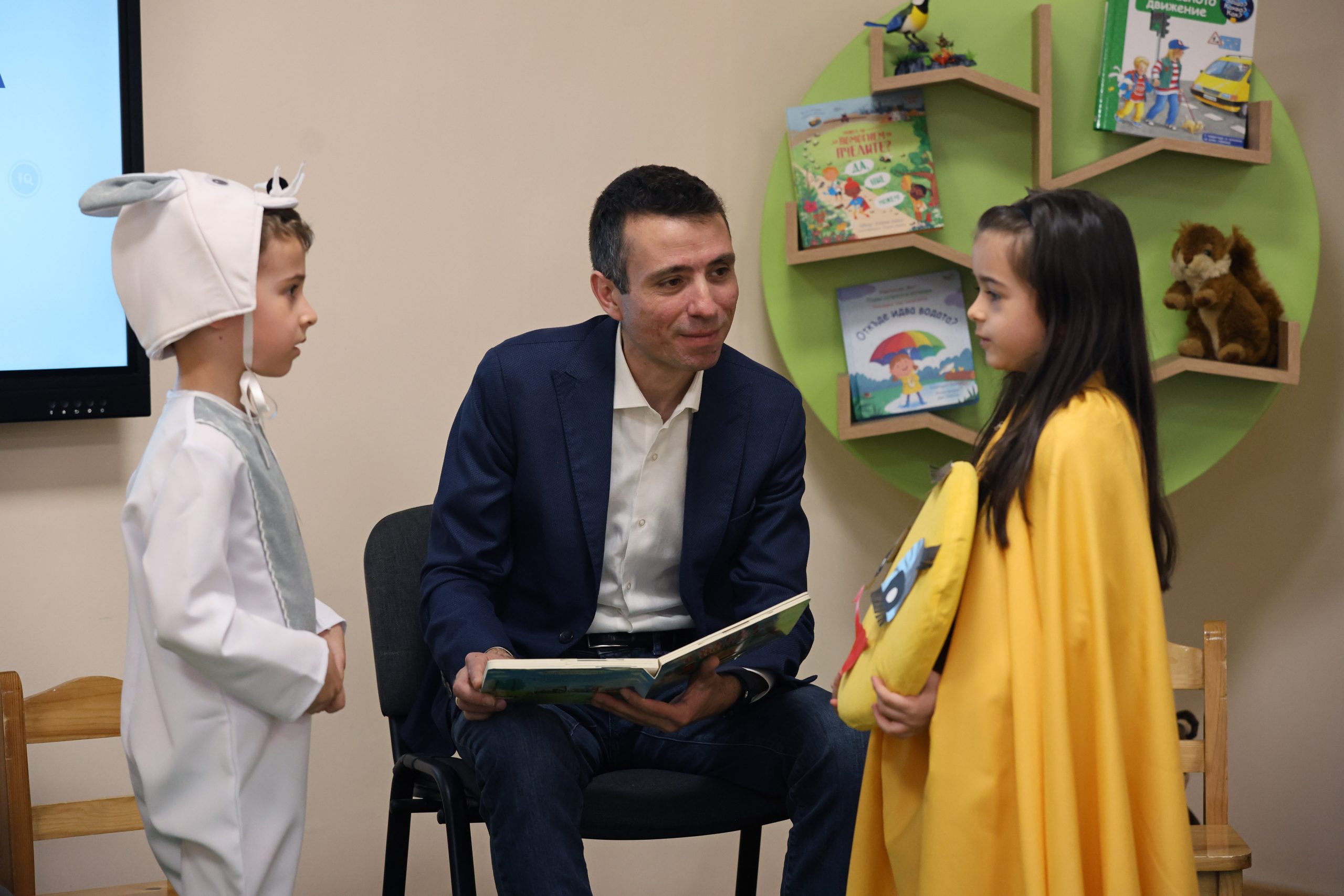 Заместник-директорът на Национално издателство за образование и наука „Аз-буки“ Венцислав Генков се срещна с деца от столичната 104. ДГ „Моят свят“ дни преди края на националната кампания „Походът на книгите“.
