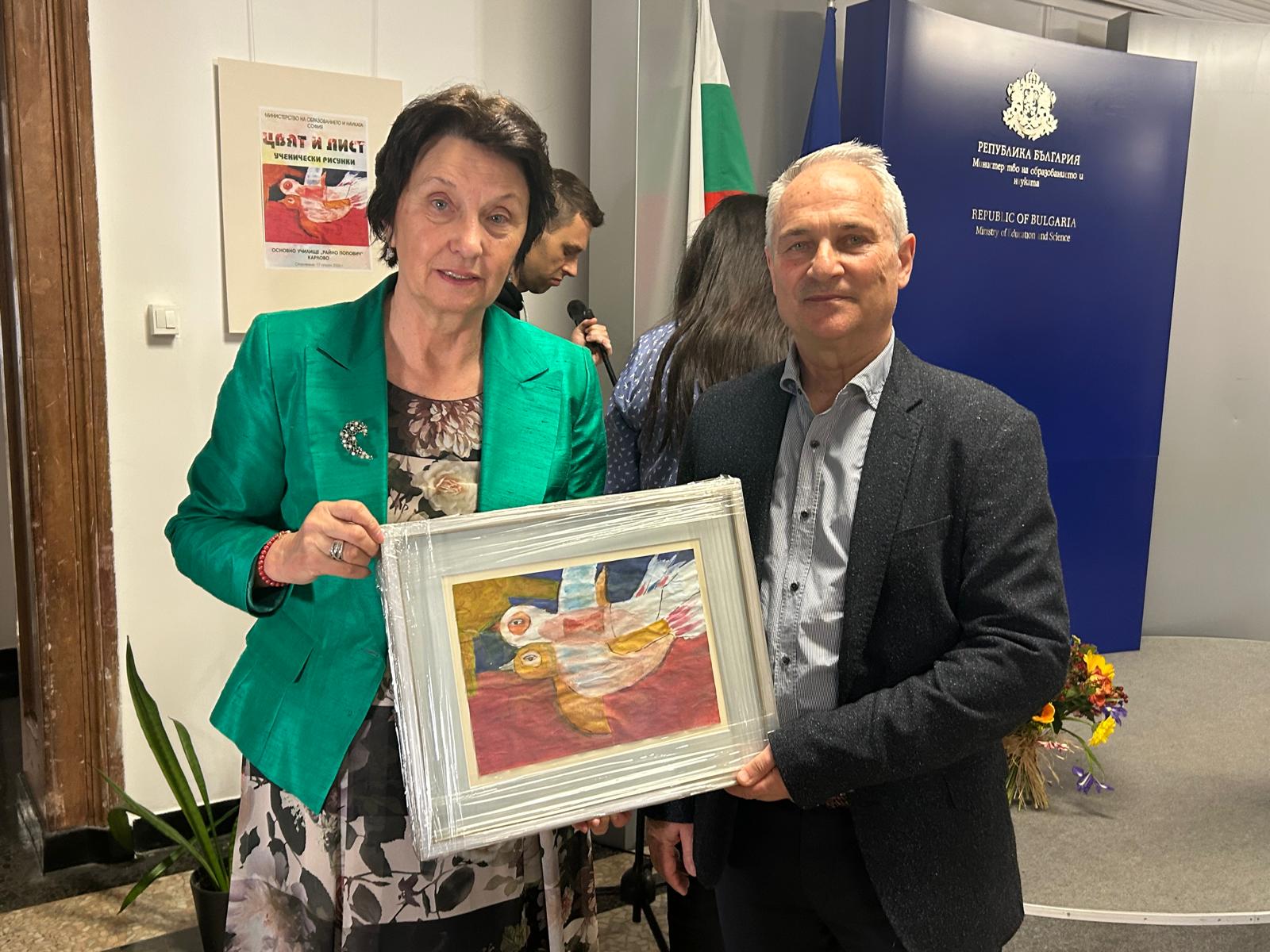 Заместник-министърът поздрави и учителя по изобразително изкуство – художника Румен Читов, който вдъхновява учениците.