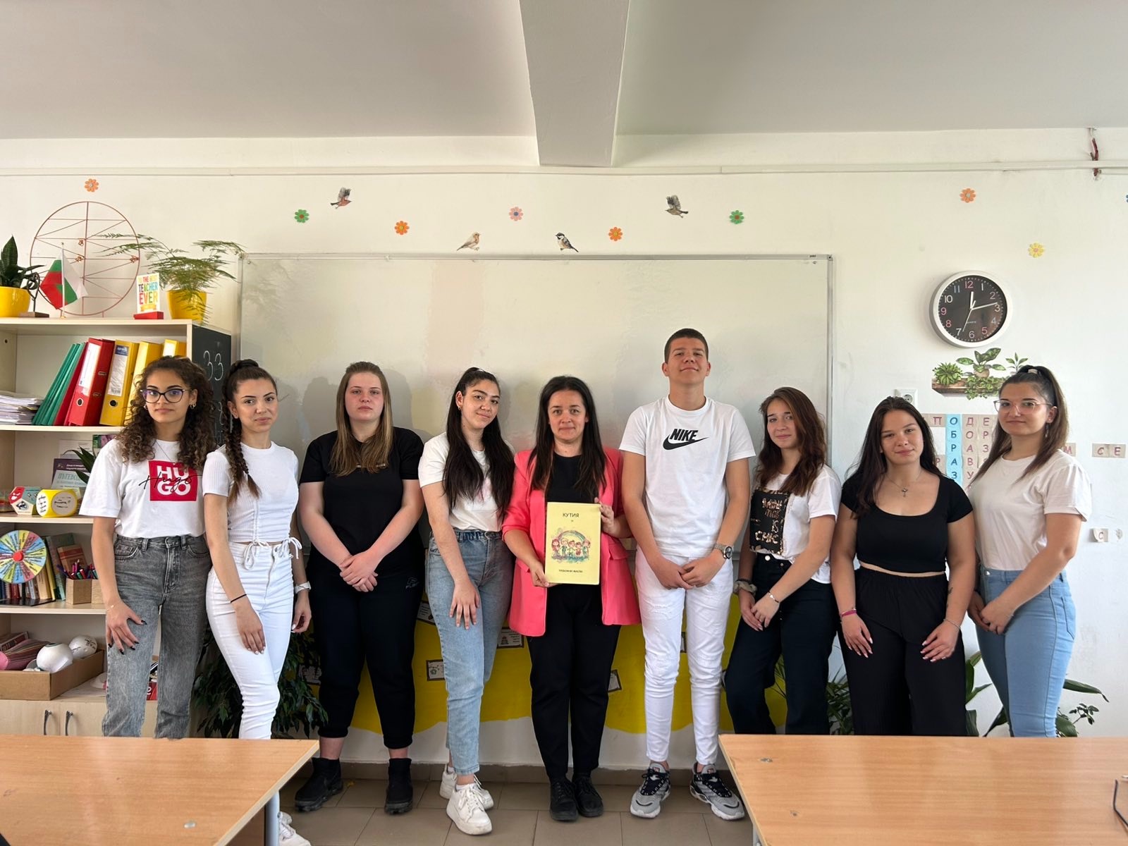 „Обикновено в един ден от седмицата, когато имам последен час с който и да е от трите класа, на които преподавам (VIII, IX и XI), отделяме няколко минутки, за да отворим кутията“, посочва тя.