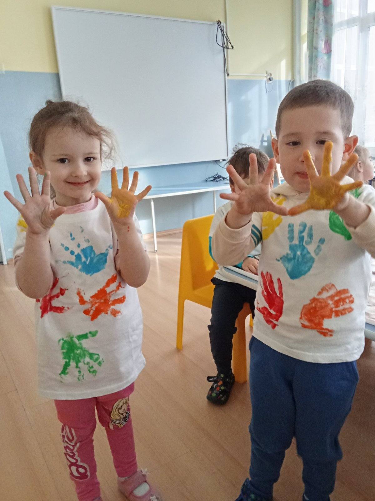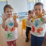 В проекта смело се включват и най-малките – децата от първа група „Многознайко“, които с боички и сръчни отпечатъци от ръчички превръщат белите тениски в истински художествени платна, под ръководството на Валентина Арсова и Светлана Атанасова.