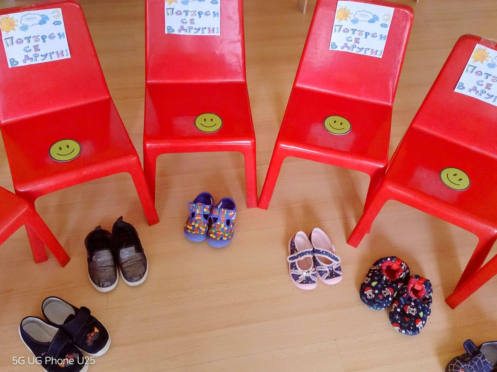 Работата по проекта продължава, като чрез игра децата се учат да приемат себе си и тези около тях. Чрез директно преживяване, което наричат „Аз съм ти, ти си аз“, те обуват обувките, в случая – пантофките на друго дете от групата. Педагозите умело насочват вниманието на децата към преживяванията и усещанията на другия и към разбирането на този отсреща.