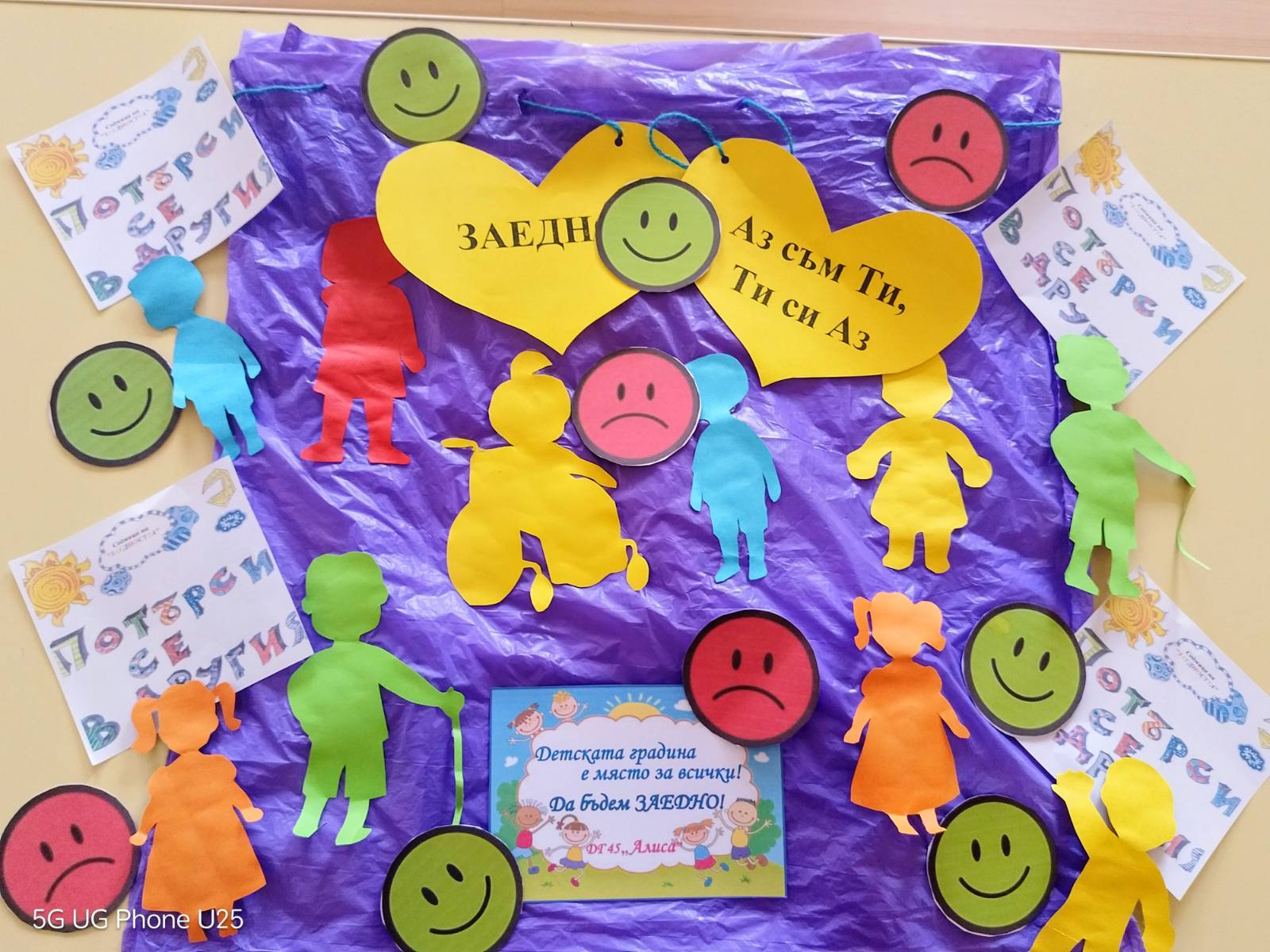 В ДГ №45 „Алиса“ настъпи цветна и весела седмица под мотото „Ние сме различни, но заедно“. Малките възпитаници се включиха в игрите и инициативите на проекта „Учим се да бъдем заедно“. В него най-активни са децата от групите „Умничета“ и „Шампиони“, а в някои от дейностите – и всички възпитаници на детската градина.
