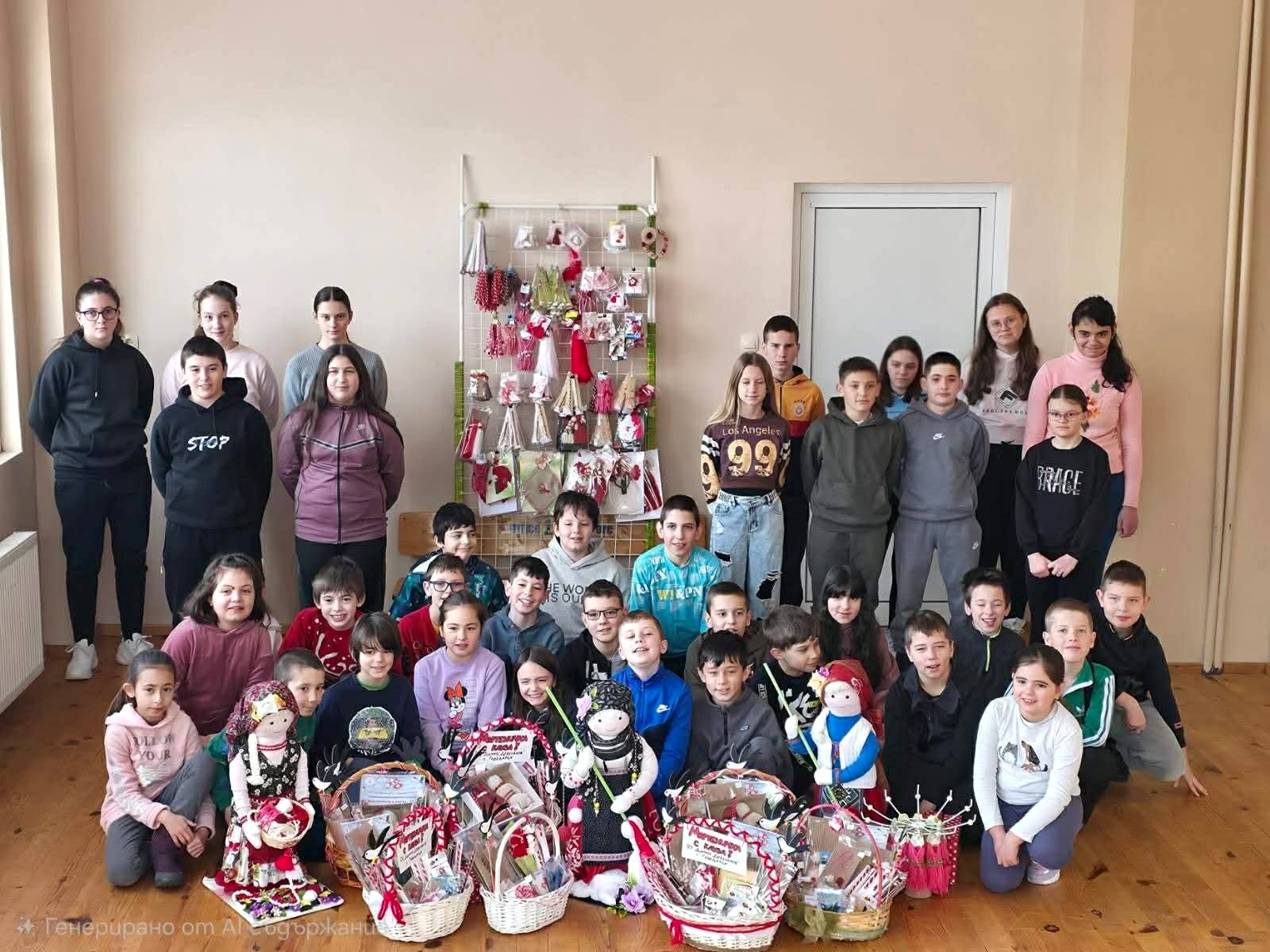 Учениците от ОУ „Димчо Дебелянов“ в с. Говедарци с произведенията си за „Мартеничка с кауза“