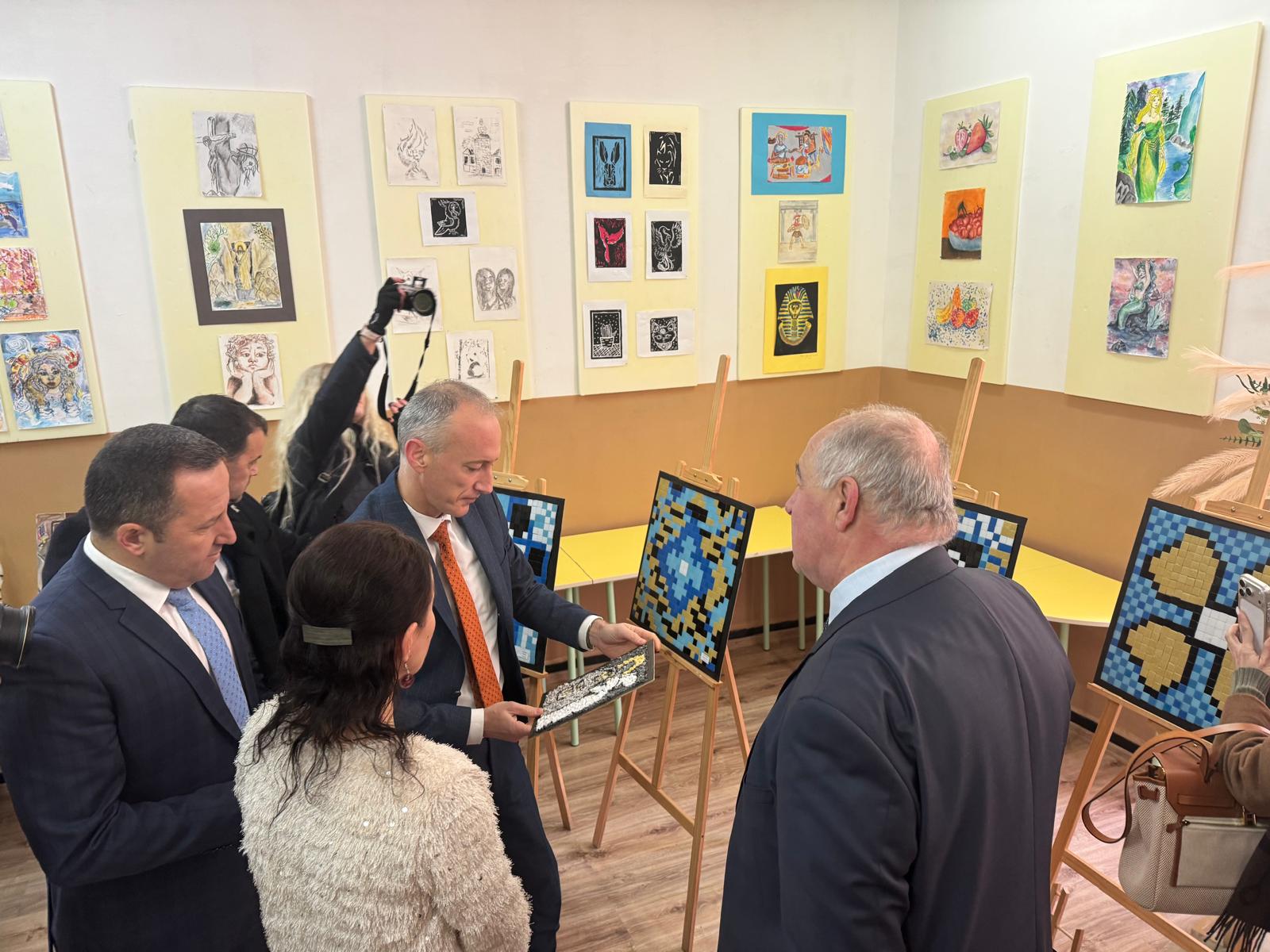 Министър Вълчев поздрави директора на училището Сергей Биров и екипа му за амбицията в бъдеще да добавят и изкуствата към STEM центъра. Първоначално новата образователна среда ще бъде допълнена с дейности по изобразително изкуство, каквато е декоративната мозайка. Забележителност в сградата на 8. СУ в Благоевград са монументалните мозайки с лика на патрона на школото Арсени Костенцев, образите на светите братя Кирил и Методий, както и най-новата на тема „Иновации в образованието“.